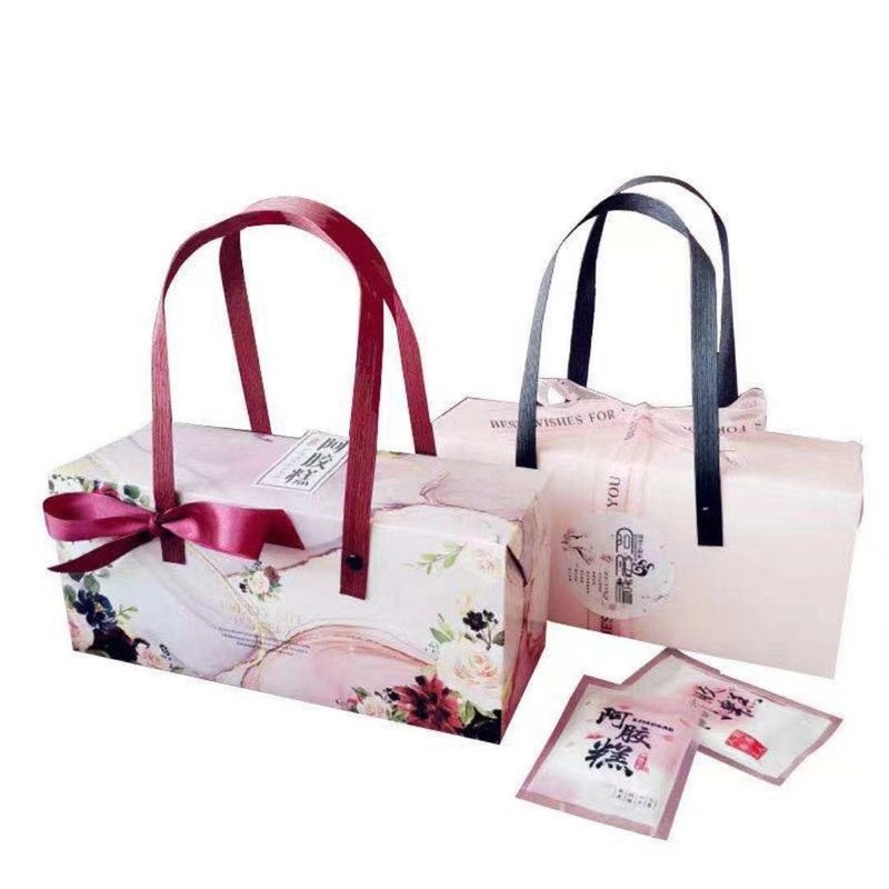 सामग्री का उपयोग कला कागज के हैंडल के साथ किया जाता है।हमारे पास दो डिज़ाइन हैंडल हैं, एक रिबन हैंडल है, दूसरा विशेष पेपर हैंडल है।हम लोगो को हॉट स्टैम्पिंग द्वारा प्रिंट कर सकते हैं, जो अधिक लग्जरी लगेगा।