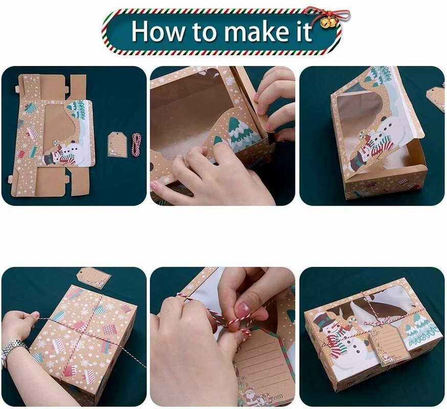 क्रिसमस उपहार पैकेजिंग के लिए खिड़की मिठाई कैंडी के साथ पर्यावरण के अनुकूल क्राफ्ट उपहार बॉक्स