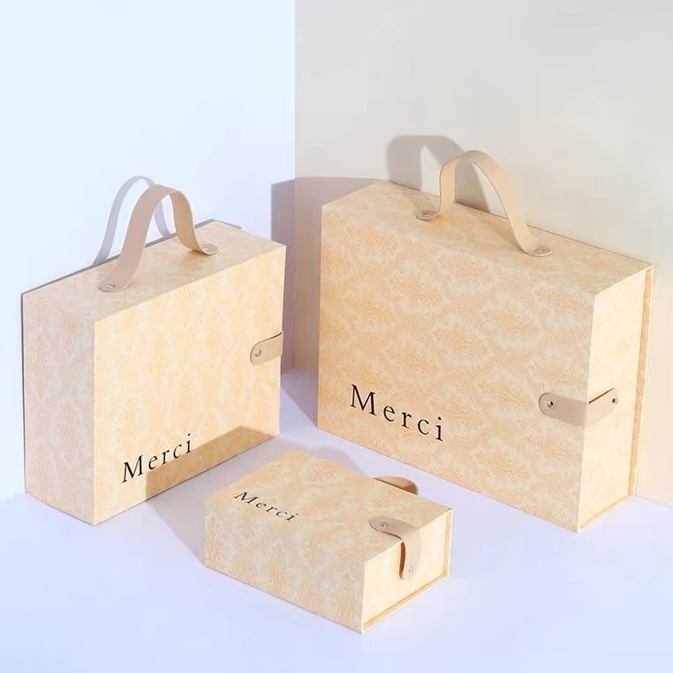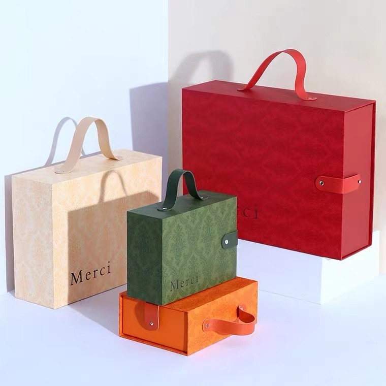 गिफ्ट पैकेजिंग के लिए हैंडल प्रिंटिंग लोगो के साथ आर्ट पेपर मैग्नेटिक क्लोजर गिफ्ट बॉक्स