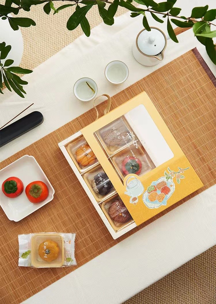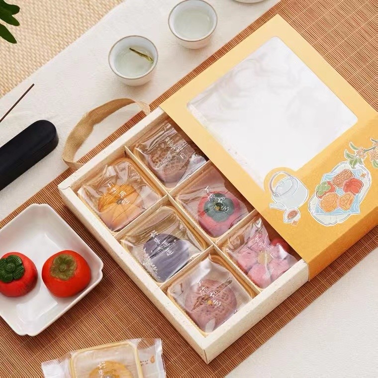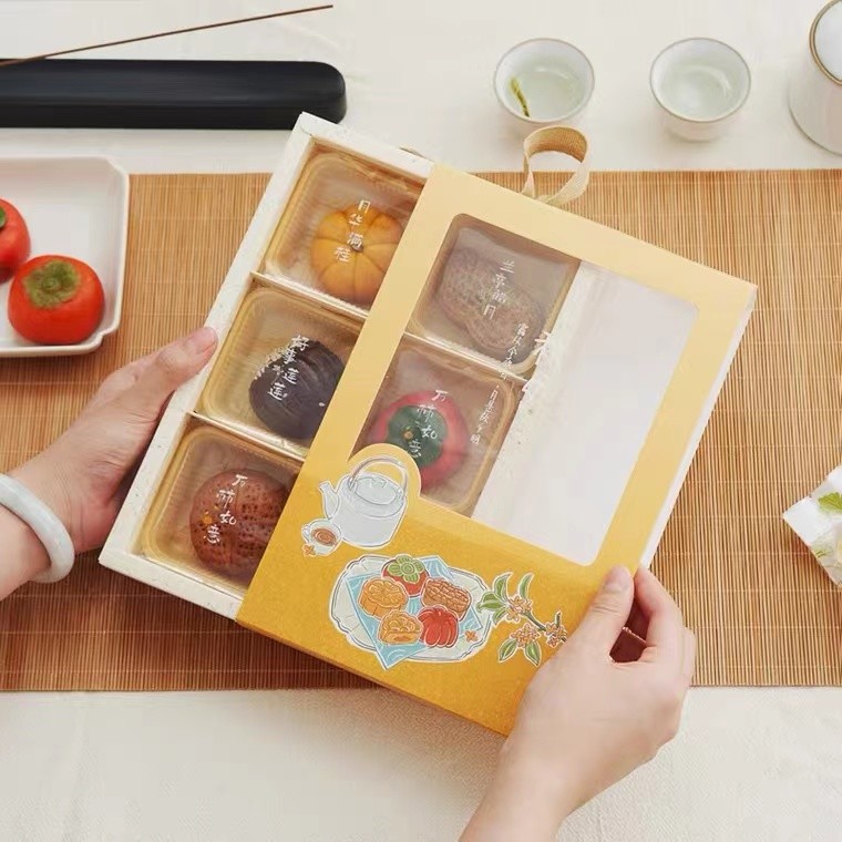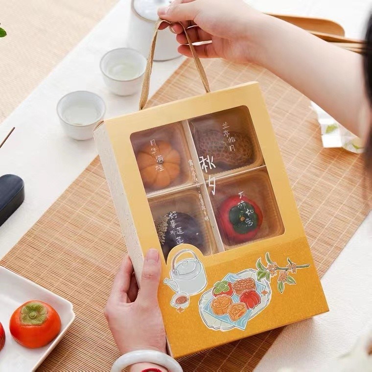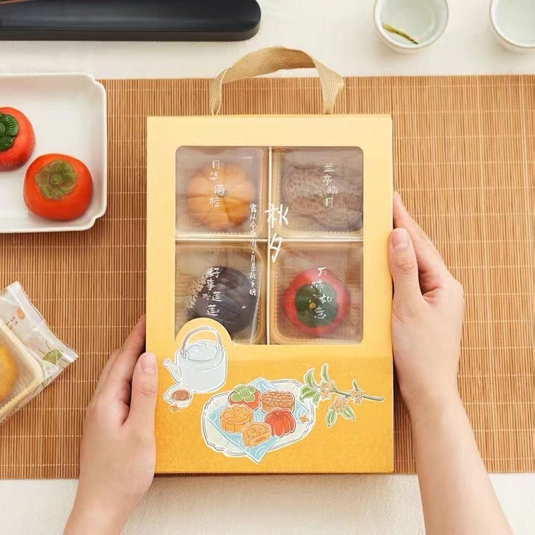 वस्तु: | खाद्य पैकेजिंग के लिए रिबन हैंडल पेपर इंसर्टर के साथ पीला लेपित पेपर फोल्डबल उपहार बॉक्स |