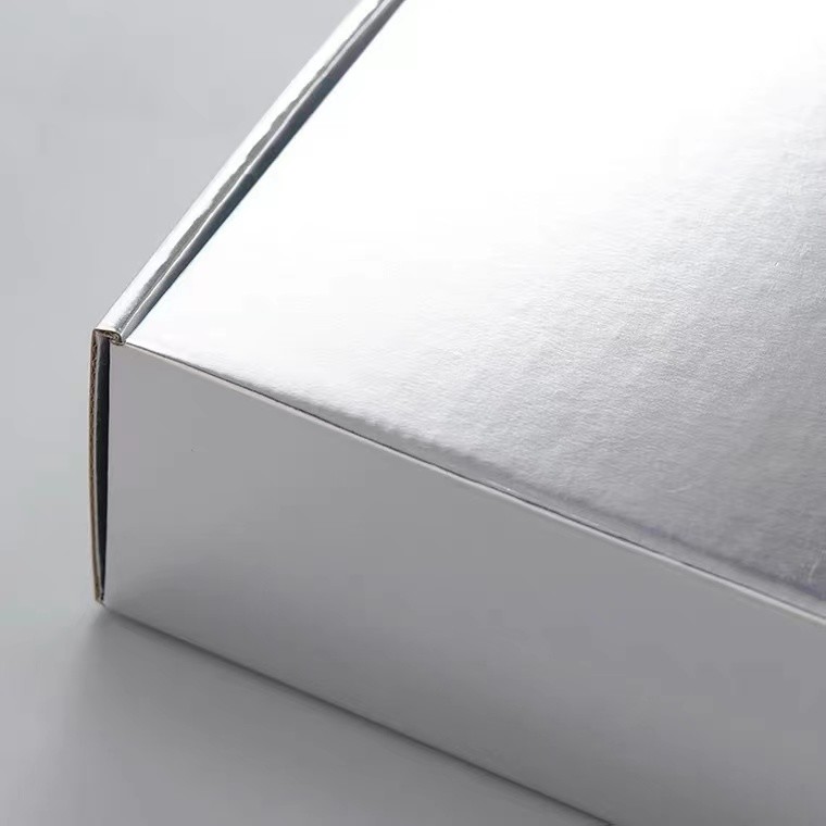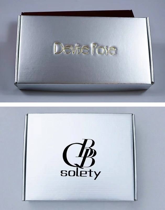 मेल शिपिंग उपहार पैकेजिंग के लिए एम्बॉसिंग लोगो के साथ सिल्वर कलर नालीदार पेपर ई बांसुरी नालीदार बॉक्स